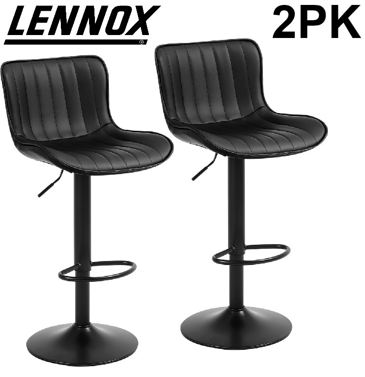 2PK Lennox Furniture Swivel Adjustable Leather Bar Stool Chair - 300lb cap - Black - (model:wh-8001)
