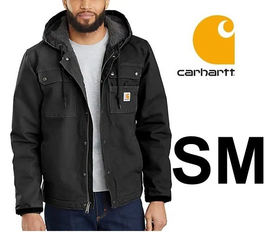 MEN'S CARHARTT RELAXED FIT WASHED DUCK SHERPA-LINED UTILITY JACKET - small - BLACK (STYLE: OJ3826-M)