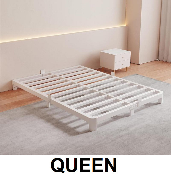 Yomaster Queen Bed Frame Metal Platform Bed Frame - QUEEN, 4" height - white (MODEL: AM01-KJ03-4Q-W)