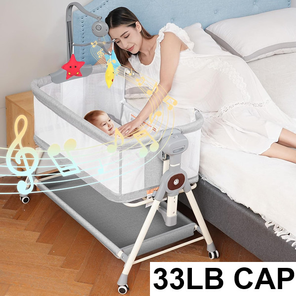 adjustable mesh-side baby bassinet with mosquito net - 13.7"x36"x22" - grey/white/brown (model: b06)