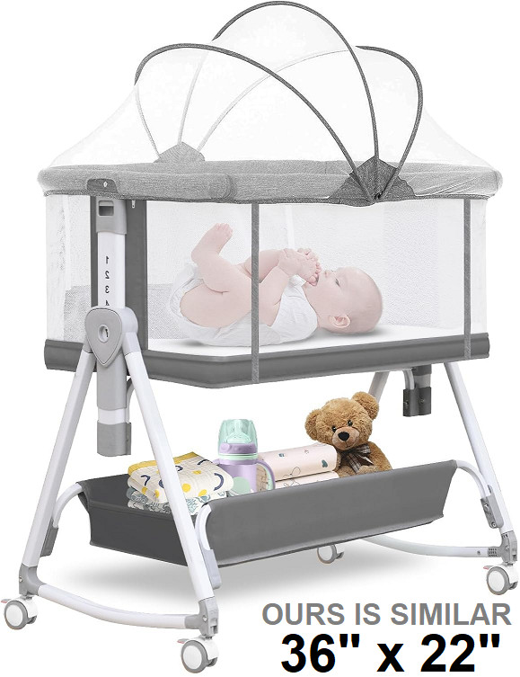adjustable mesh-side baby bassinet with mosquito net - 13.7"x36"x22" - grey/white/brown (model: b06)