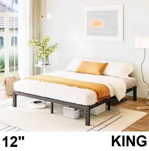 Neslime platform bed frame no box spring needed - 12" high - King 76" x 80" - Black (Model: ee12-5k)