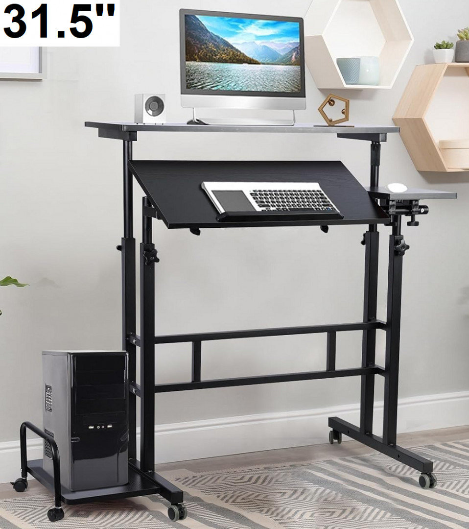 Seventable Computer Desk with Power Outlet, LED Light and monitor stand (MODEL: CPT037-V2N-WE100-ST)