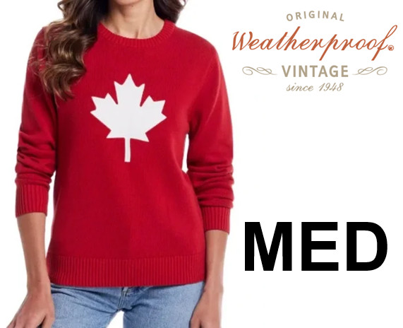 women's weatherproof vintage knit maple leaf crew neck sweater - Medium - RED/WHITE (style: 1888751)