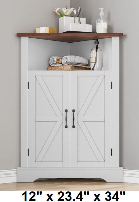 Mino Kesper Floor wooden Corner Cabinet with Door - 12" x 23.4" x 34" - white - (model:hz-sjag203wh)
