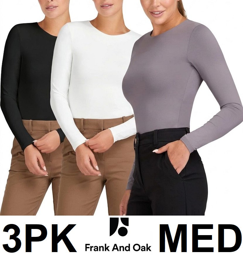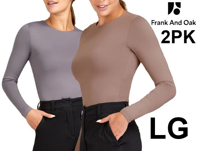 2pk women's frank and oak smoothing contour long sleeve shirts - large - grey/beige (style: 2928453)