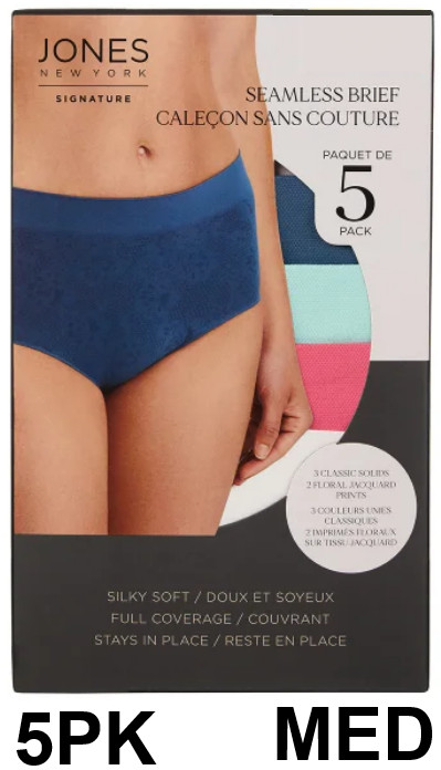 5PK WOMEN'S JONES NEW YORK SEAMLESS BRIEF UNDERWEAR - SILKY SOFT - medium - ASSORTED (MODEL:1476501)
