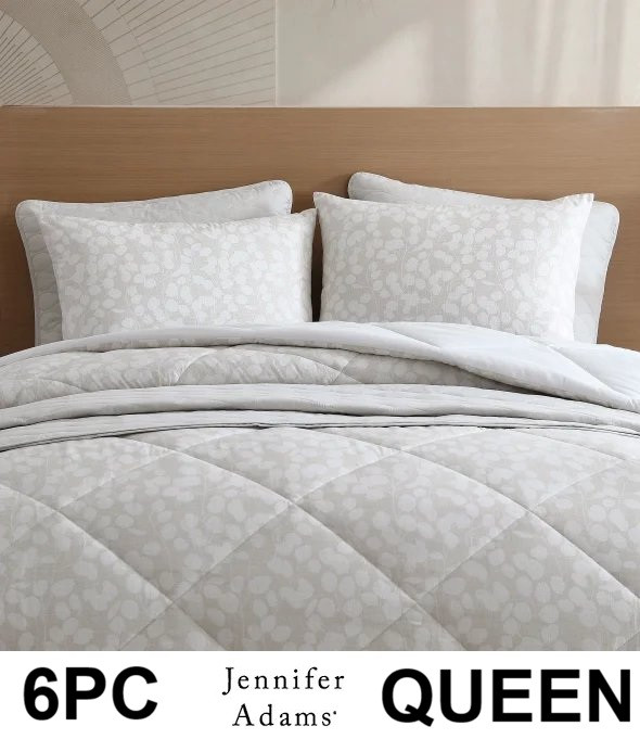 6pc jennifer adams reversible all season comforter bedding set - QUEEN - taupe/white (style:1796280)