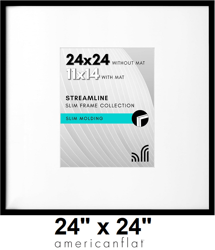 Americanflat square Picture photo Frame with Polished Plexiglass and thin border - 24" x 24" - black