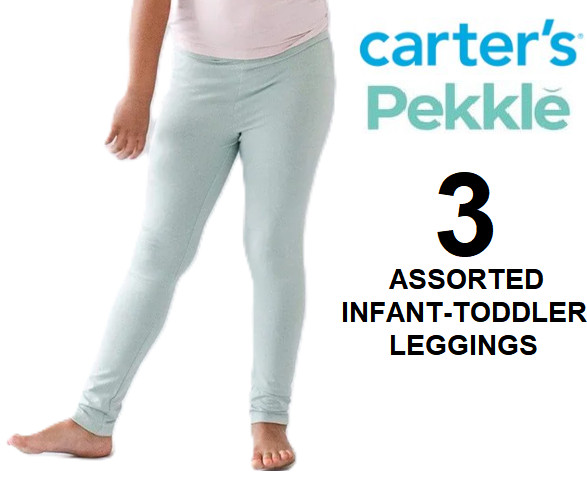 3 assorted carter's pekkle infant to toddler leggings - 3m / 6m / 24m - green / blue / purple floral