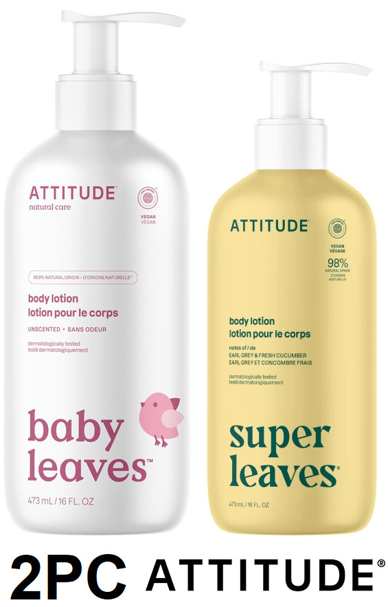2pc attitude super/baby leaves body lotions - 473ml each - unscented / early grey and fresh cucumber