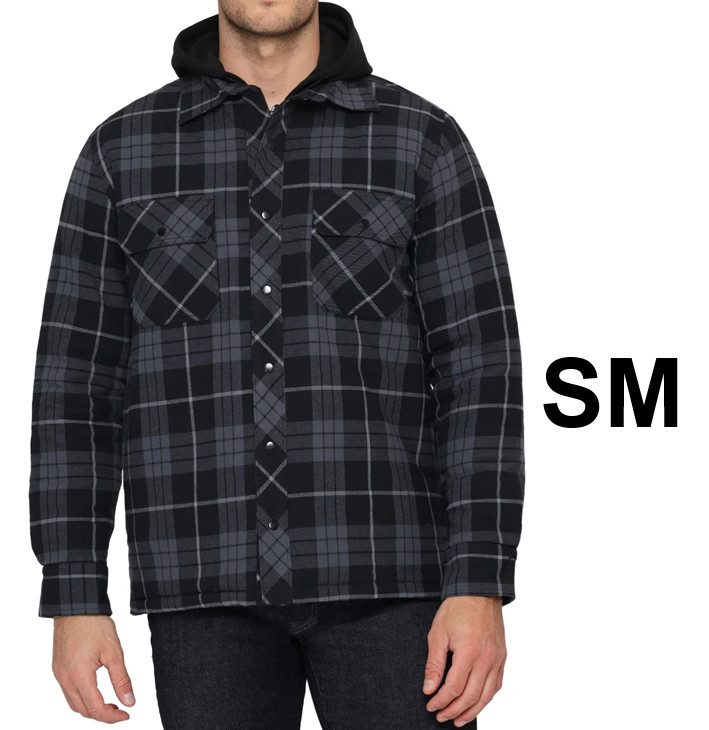 Men’s The B.C. Clothing Co. Quilted Flannel Overshirt With Hood - small - black grey (style:3822333)