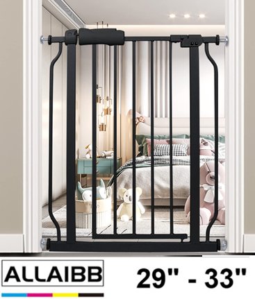 ALLAIBB Walk Through Pressure Mount Auto Close Tension Safety Gate - 29" - 33" - black (MODEL: W046)