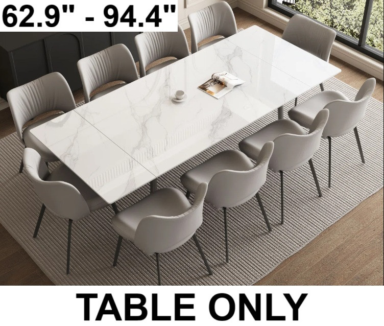 george oliver Homeira Extendable Rectangular Sintered Stone Dining Table - seats 6-10 people - white