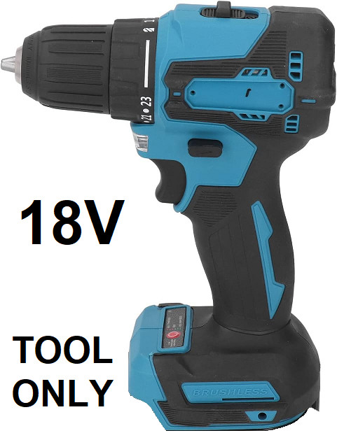 M6 Cordless Brushless Electric Drill Driver - 18v, 1700RPM, LED Light, Ergonomic Handle - blue/black