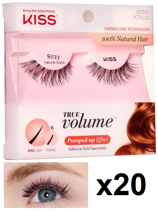 20 KISS True Volume PUMPED-UP EFFECT EYELASH strip made with 100% NATURAL HAIR (Style: 62583/KTVL02)