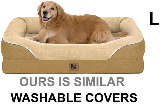 Chez Paw Pet Bed with Washable Covers and One Throw Pillow - Large - ~36" x 27" x 8.5" - Brown/Beige