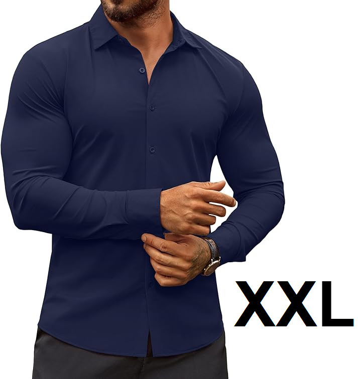 men's COOFANDY wrinkle free stretch muscle fit button down long sleeve dress shirt - xxl - navy blue