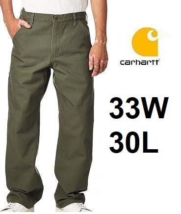 men's carhartt loose fit washed duck work dungaree utility pants - 33w x 30l - moss GREEN (bn0011-m)