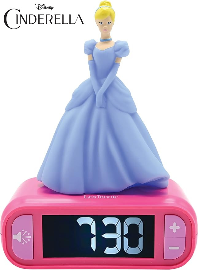 lexibook disney princess Cinderella digital alarm clock with night light - blue/pink (model: rl800dp