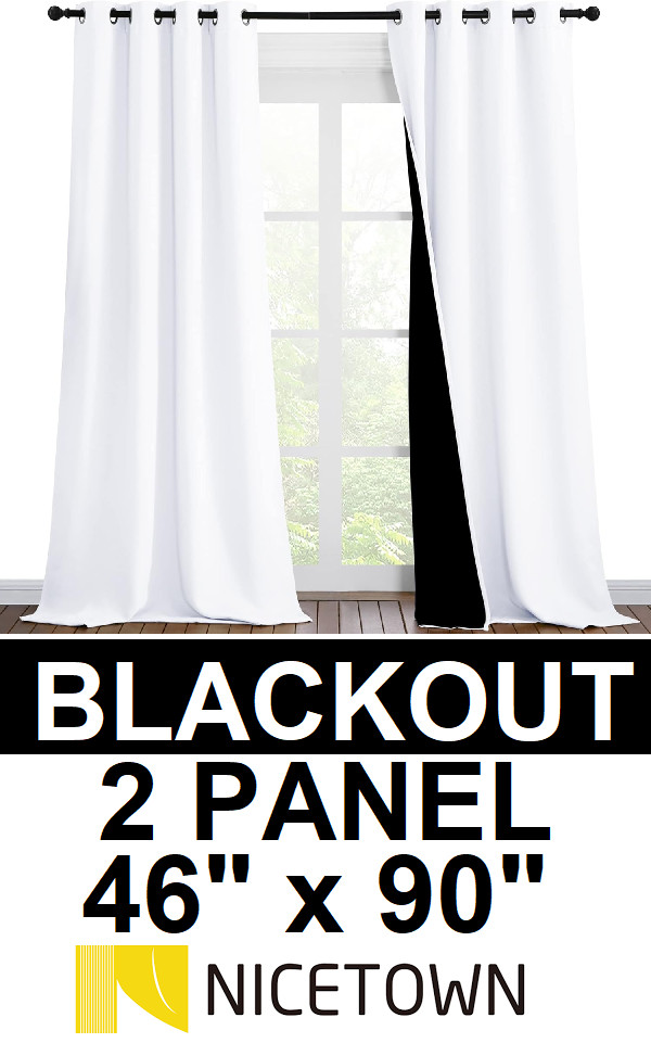(2 PANELS) nicetown blackout full shading top curtains with silver grommets - 42" x 84" - pure white