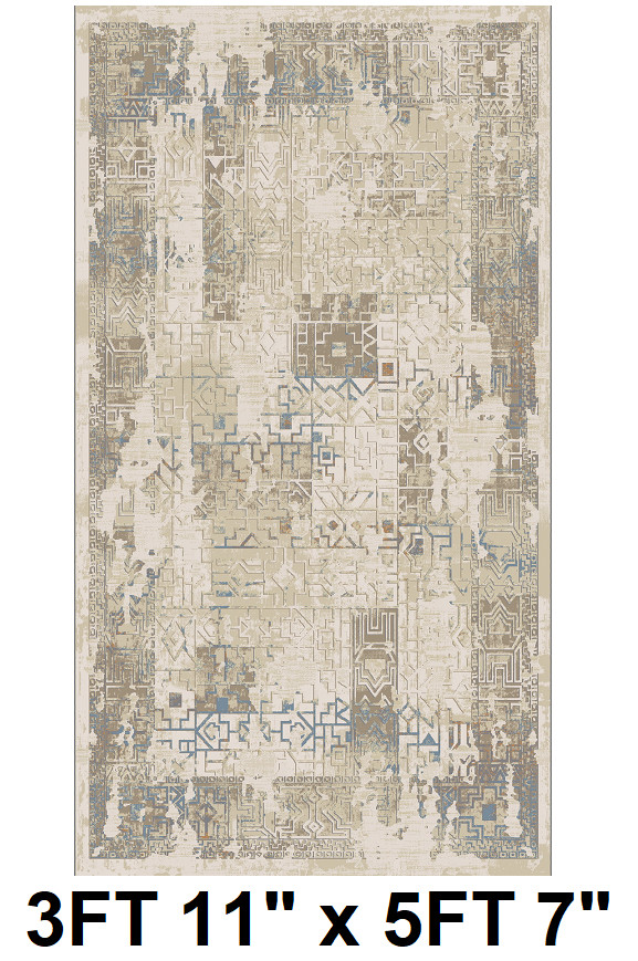 Elite Carpet Barcelona Collection Abstract Area Rug - 4FT x 6FT - beige/Light Blue - (Model: 15458A)