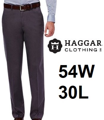 MEN'S HAGGAR CLOTHING CLASSIC FIT PREMIUM NO IRON KHAKI PANTS - 54W X 30L -DARK GREY (style:hc90884)