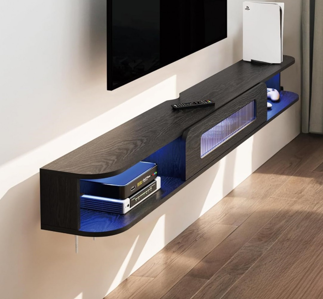 Bixiaomei Floating TV Unit Console unit with LED lights and textured glass window door - 71" - black