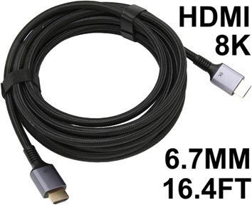 8K High Speed HDMI 2.1 Cable Cord Compatible with HD TV, Monitors, Projectors, 6.7MM, 16.4FT - BLACK