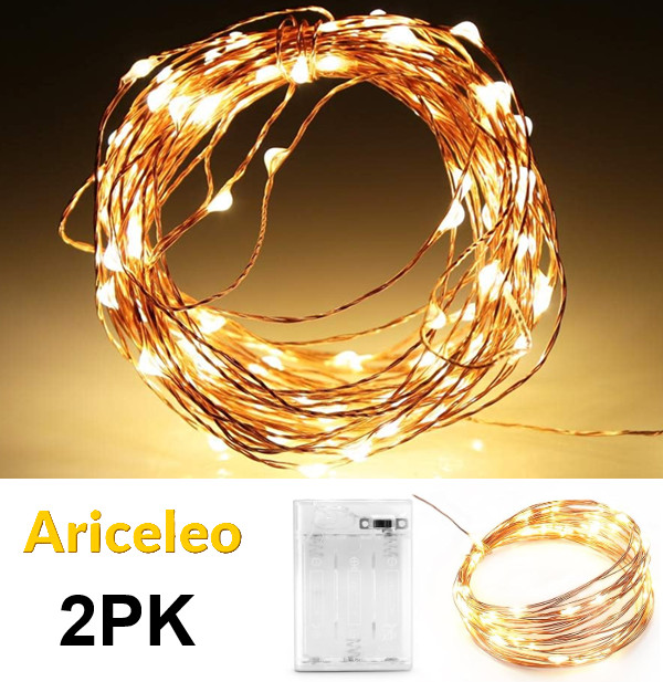 2PK ARICELEO Battery Operated MINI Led Fairy Lights - 16FT - WARM WHITE (MODEL: MRSXD-WW-5M-2-MINI)