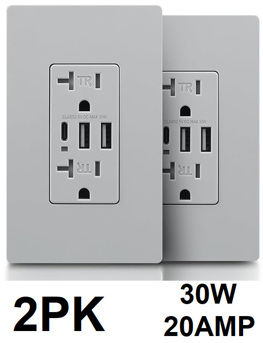 2PK TOPELER USB Electrical Socket with Type A & C Port 30W, 6.0A - white - (model: ewu262a1c-wh-2pk)