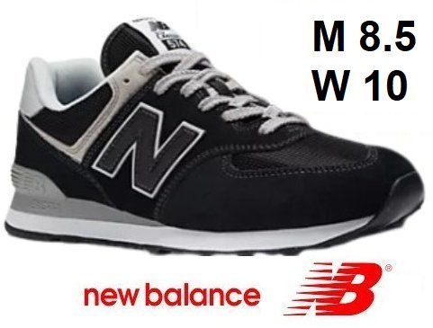 adult unisex new balance 574 Core classics sneakers - M: 10 W: 11.5 - black/white - (style:ML574EVB)