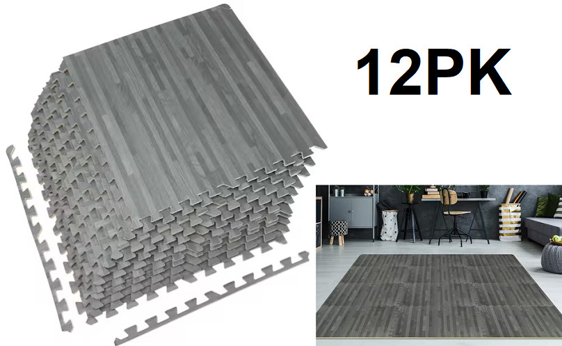 12pk interloking residential foam carpet square - 24" x 24" - 48sq.ft. - grey (model: mat-woodgry12)