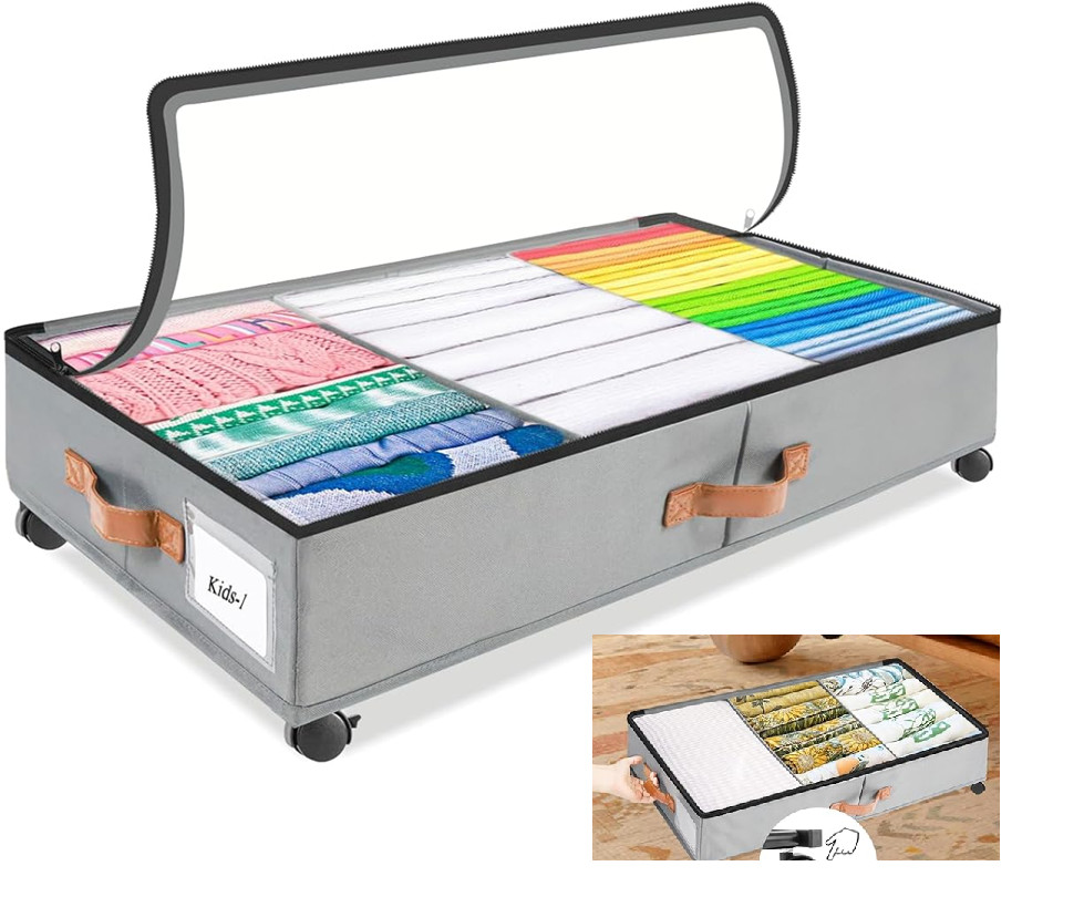 BUTLY Under Bed Storage with Wheels Closet Organizers Container Clear Top - 30.3 x 16.5 x 6.7 - GRAY