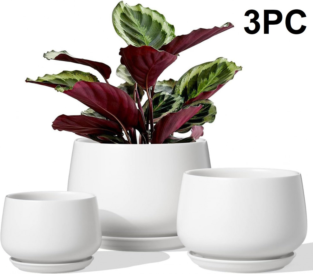 3PC LE TAUCI CERAMIC PLANT POTS, INDOOR PLANTER WITH DRAINAGE HOLE & MESH COVER - 4"/5"/6.5" - BEIGE