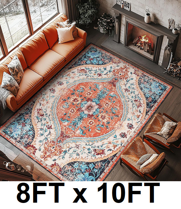 laise machine washable boho low pile distressed non-slip area rug - 8ft x 10ft - orange/multicolored