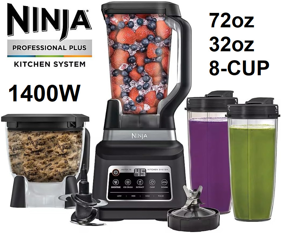 NINJA PROFESSIONAL PLUS BLENDER WITH AUTO IQ - 72oz pitcher - 1400 WATT - BLACK/grey (Model: BN701C)