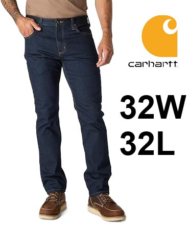 MEN'S CARHARTT SLIM TAPERED RUGGED FLEX STRAIGHT FIT JEANS - 32W X 32L - NAVY BLUE (MODEL: BD2807-M)