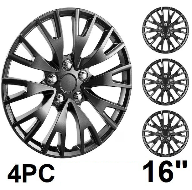 4pc Universal Clip-On Sturdy & Durable Scratch-Resistant Hubcap Wheel Rim Hubcaps - Fits 16" - black