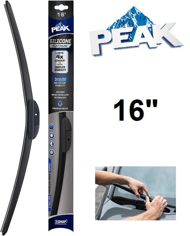 PEAK Silicone Platinum Front Windshield Wiper Blade - universal fitment, 16" - black (model: psb161)