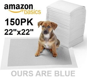 150PK AMAZON BASICS REGULAR CARBON PET DOG AND PUPPY DISPOSABLE TRAINING PEE PADS - 22" x 22" - Blue