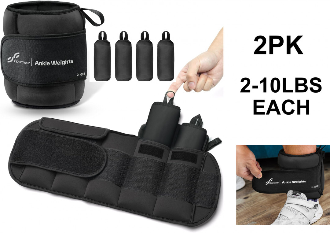 2PK SPORTNEER ADJUSTABLE ANKLE WEIGHTS set - 2 TO 10LBS EACH - black (MODEL: aaw-10 / y22-82002-13))