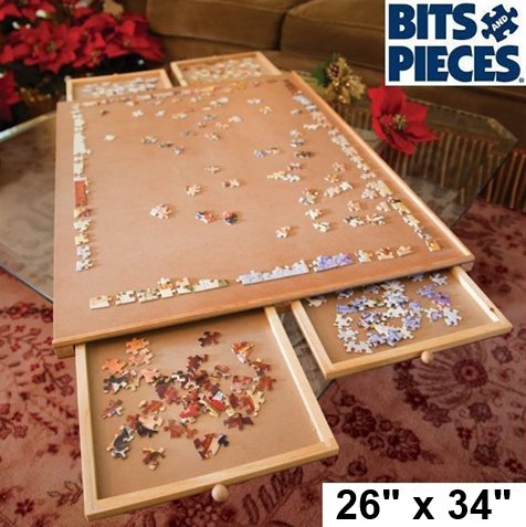 BITS AND PIECES WOODEN PUZZLE STORAGE PLATEAU PUZZLE BOARD WITH 4 DRAWERS - 26" X 34" (MODEL: 47272)