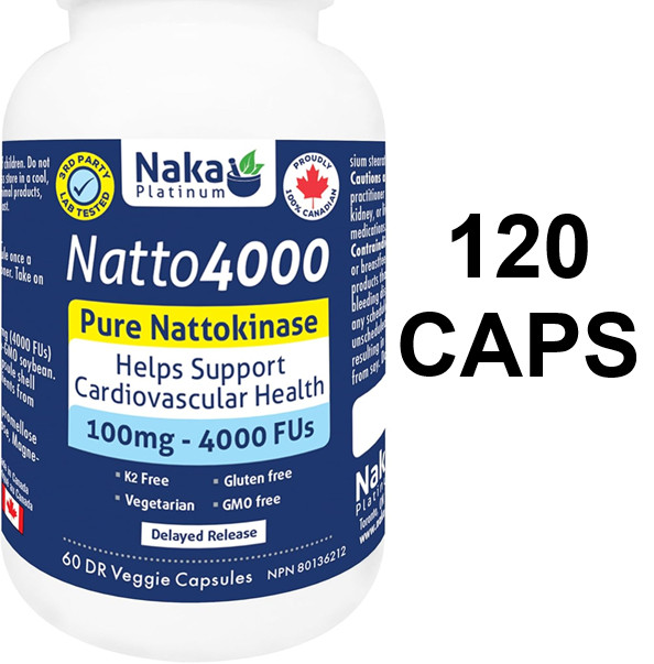 (120 CAPSULES) Naka Platinum NATTO 4000 pure nattokinase helps support cardiovascular health - 100mg
