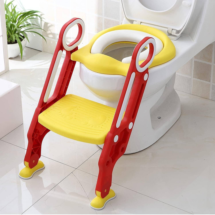 non-slip safe potty training seat with ladder and handle - Fits standard height toilets - red/yellow