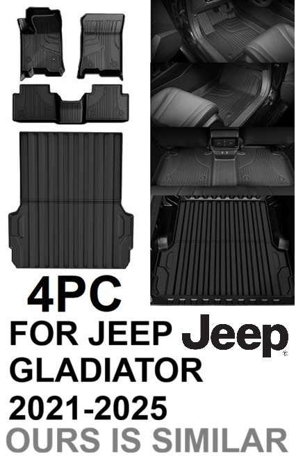 4PC AOMSAZTO FLOOR / BED HEAVY DUTY WATERPROOF MATS Compatible with jeep gladiator 2021-2025 - BLACK