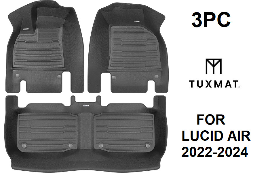 3PC TUXMATT Front And Rear Row Custom Floor Liner Set - FOR LUCID AIR 2022-2024- BLACK (MODEL: 8797)