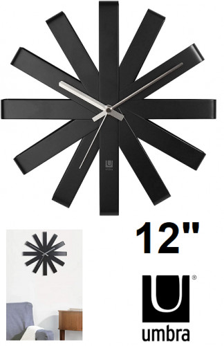 UMBRA RIBBON SILENT NON-TICKING BATTERY-OPERATED MODERN WALL CLOCK - 12" - BLACK (MODEL: 118070-040)