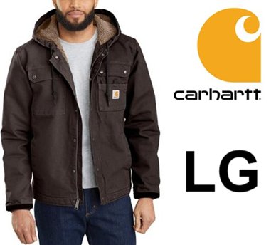 MEN'S CARHARTT RELAXED FIT WASHED DUCK SHERPA-LINED UTILITY JACKET - Large - BLACK (STYLE: OJ3826-M)