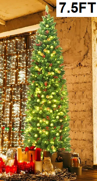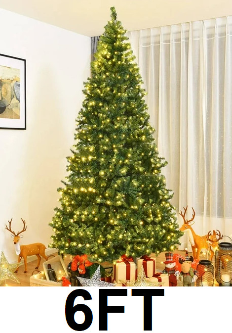 COSTWAY PRE-LIT ARTIFICIAL CHRISTMAS TREE WITH PVC HINGED AND 300 LED - 7FT - green (MODEL: CM20638)